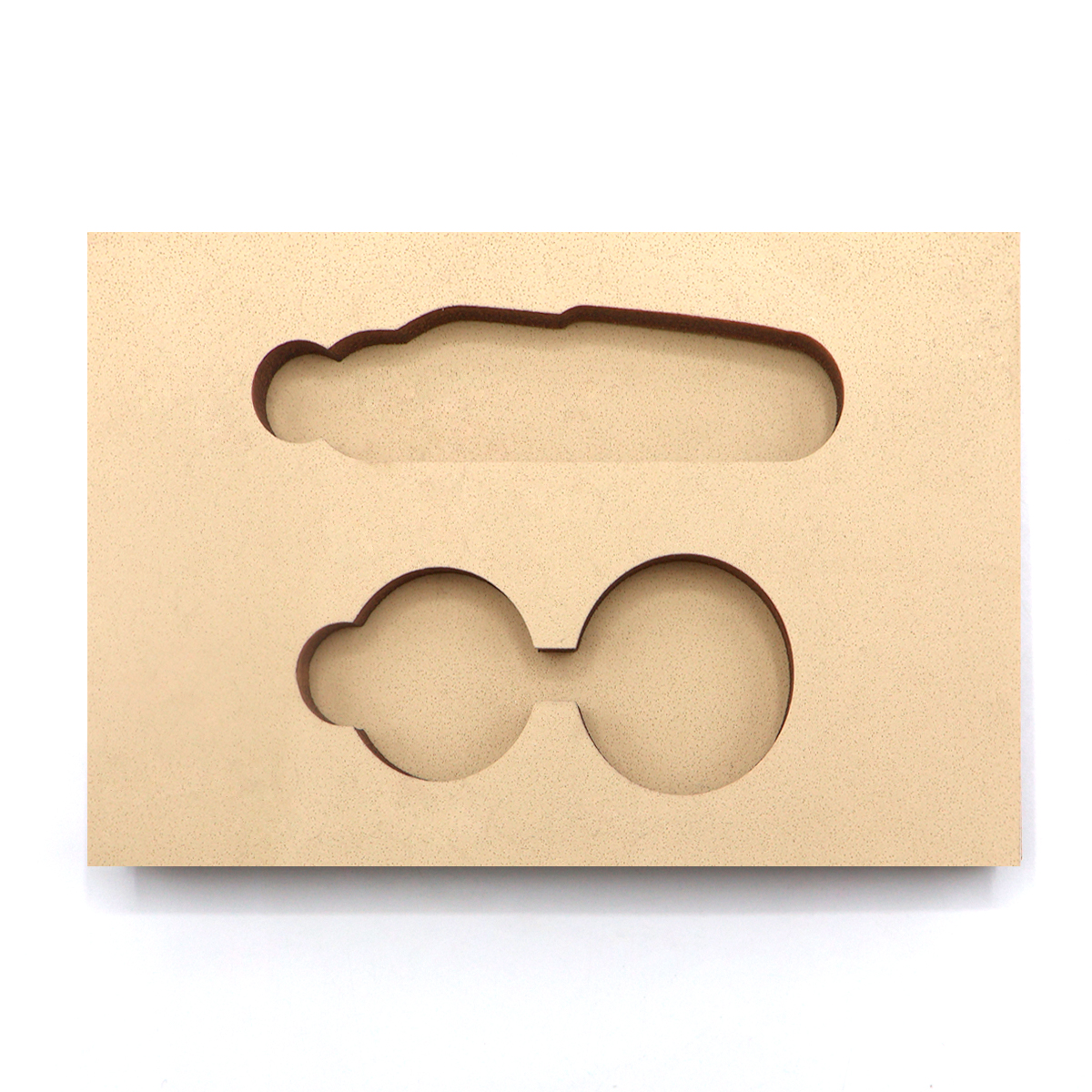 Ложемент, выполненный из бежевого ЭВА материала, представляет собой многослойную конструкцию, состоящую из двух слоев: нижнего толщиной 10 мм и верхнего — 10 мм. Согласно утвержденному макету, проемы для размещения предметов могут быть расположены как в одном, так и в обоих слоях. В стоимость входят все необходимые материалы и технологические процессы. Создание технического макета — отдельная услуга, которая оплачивается дополнительно, которую вы можете выбрать в калькуляторе карточки товара. Пожалуйста, прикрепите к заказу оригинал-макет в формате .pdf Данный ложемент идеально подходит для коробки Dizzy арт. RUS5055.19