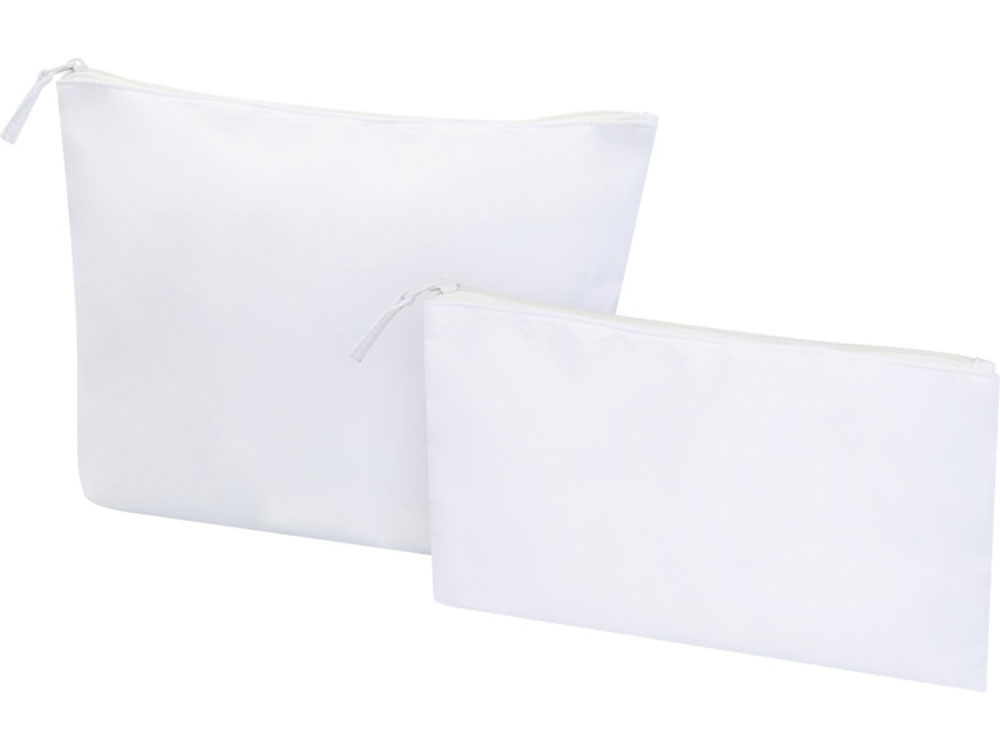 Набор из 2 косметичек, изготовленных из переработанного полиэстера. Полиэстер имеет сертификат GRS. В комплект входят одна большая и одна маленькая косметички. Легкие, прочные и удобние для хранения косметики или электроники. Большая сумка имеет размер 32 х 21 см, а маленькая 23 х 13 см.