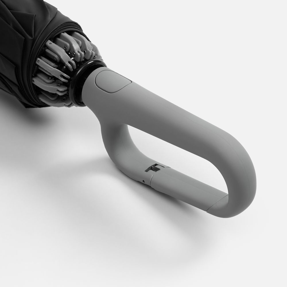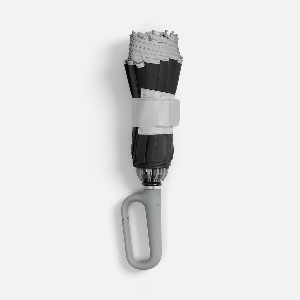Зонт обратного сложения с ручкой-карабином Foldberry, серый (диаметр купола 105 см, длина 65 см, длина в сложении 36 см)