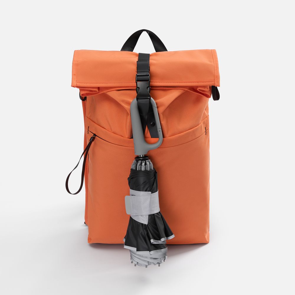 Складываясь после дождя, он прячет мокрую поверхность внутри, а сухая остается снаружи — в закрытом положении зонт не побеспокоит окружающих и не намочит одежду. За ручку-карабин зонт удобно подвесить, например, на рюкзак.