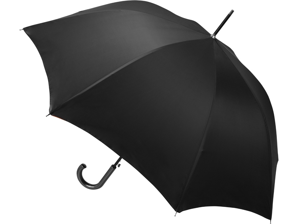 Интересный двухцветный зонт-трость спасет вас от дождя и легкого снега. Внешняя поверхность купола окрашена в черный цвет, а внутренняя имеет яркий, насыщенный оттенок, что непременно привлечет внимание. На купол зонта можно нанести логотип.