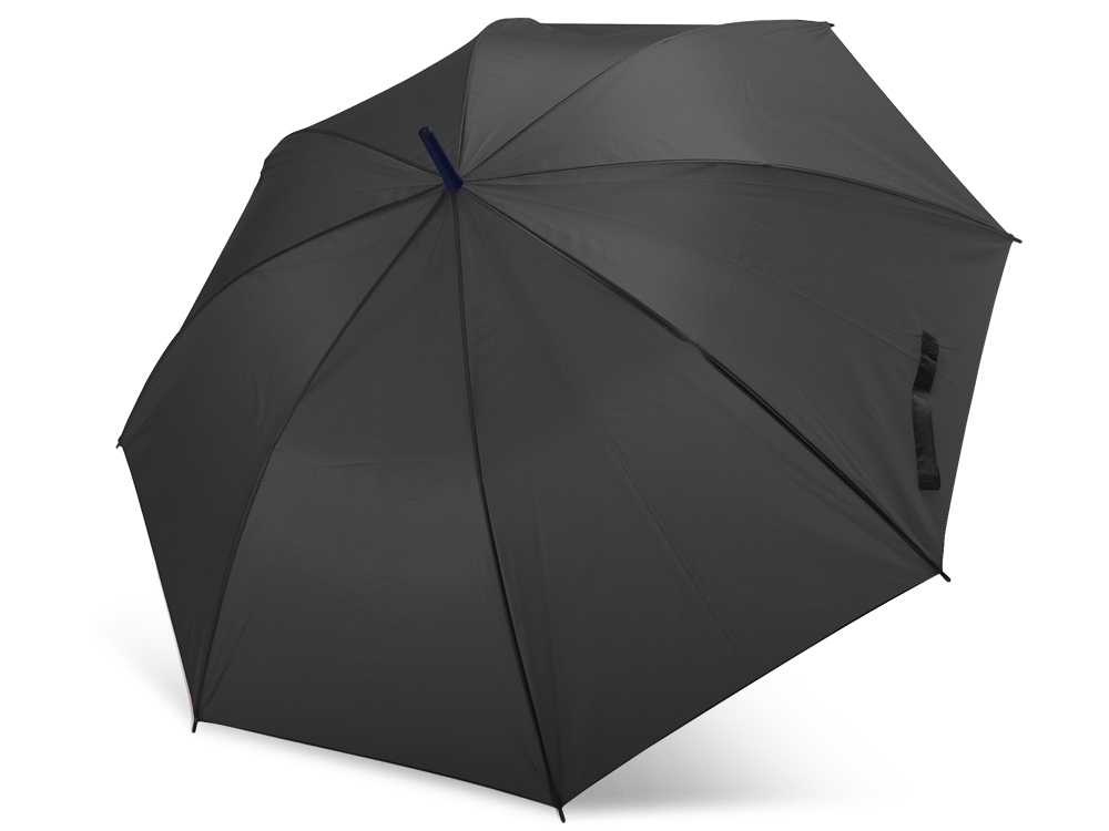 Автоматический зонт с тканью и ручкой в тон. Спицы и наконечники черного цвета. Застежка на липучке. 105 см в диаметре.